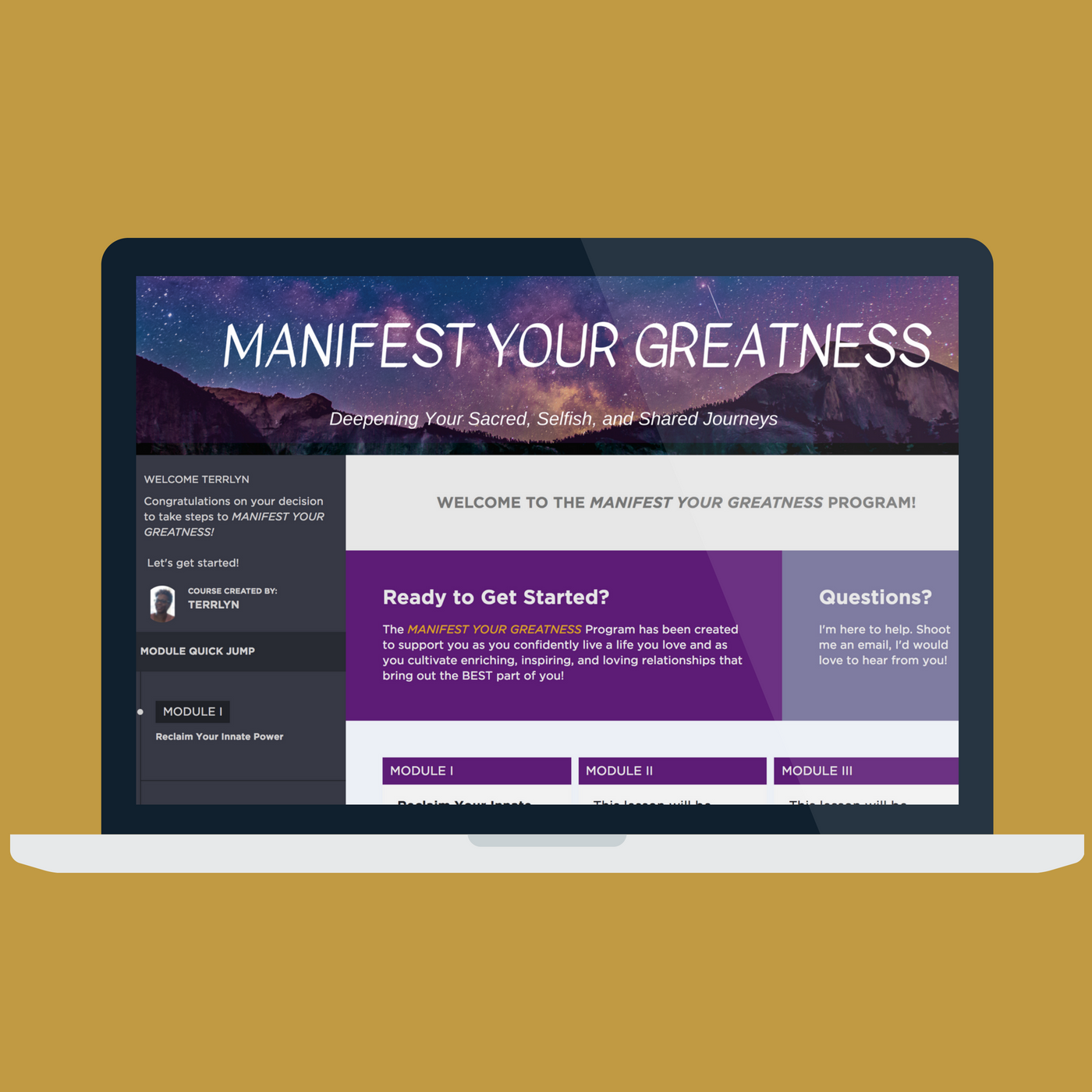 MANIFEST YOUR GREATNESS Program is a perfect time to embrace all of who you are while learning valuable tools to help you live your passion. One of the benefits of this program is that you can engage in the Program at your own pace and on your own time.